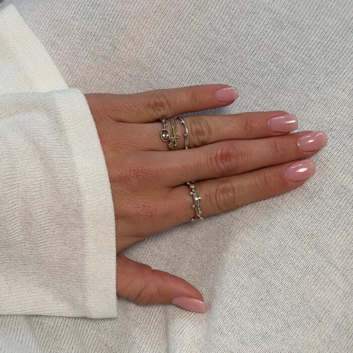 By Birdie Lotus Duo ring er en raffineret sølvring fra Lotus kollektionen, sammensat af to håndsmedede ringskinner i 925 sterlingsølv. Det dobbelte design skaber et let og dynamisk udtryk, hvor de to ringe smelter sammen til én harmonisk helhed.
