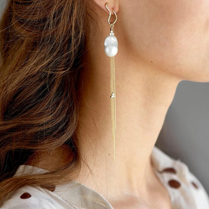 Fryd Wave vedhæng til ørering fra Ro Copenhagen er et elegant og bevægeligt smykke, der tilføjer et let og feminint udtryk til din styling. Det fine kædevedhæng er skabt til at hænge smukt fra en Fryd Wave ørering og tilfører et levende spil i takt med dine bevægelser.